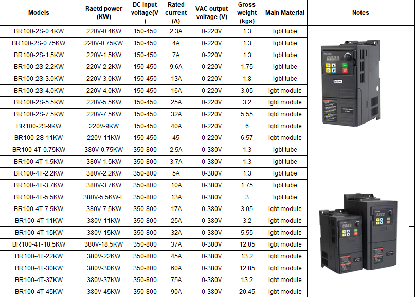 BR100 VFD Specification                                        ZK100 0.4-11KW Variable Frequency Inverter