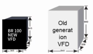•  BR100 VFD compared to peers: same power output, reduced volume by 30%